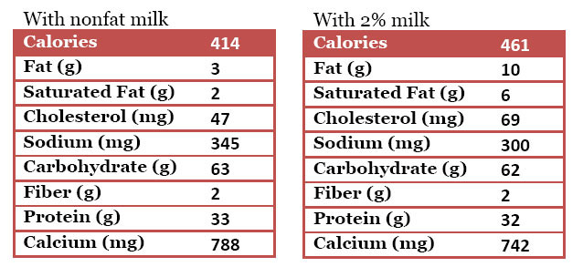 • 1  1/2 cups nonfat or 2% milk (or milk substitute of your choice)